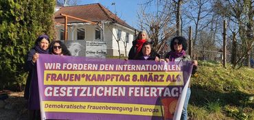 Avrupa Demokratik Kadın Hareketi 9 Mart günüde kadınlarla bir buluşma gerçekleştirdi. Buluşmada kadının mücadele tarihine dair video izlendi ve ardından Ev içi emek kampanyasına dair kısa bir sunum yapılarak, anketler dolduruldu.