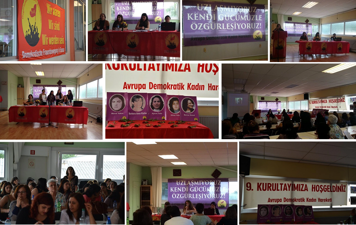 Avrupa Demokratik Kadın Hareketi; 11-12 Haziran’da Almanya’nın Stuttgart kentinde “Uzlaşmıyoruz Kendi Gücümüzle Özgürleşiyoruz” şiarıyla 9. kurultayını gerçekleştirdi. Avrupa’nın bir çok ülkesinden (Almanya, Fransa, İsviçre, Hollanda, Avusturya, İngiltere) katılan delegeler, seçme ve seçilme haklarını kullanarak 9. merkezi komisyonunu oluşturdu. Demokratik Kadın Hareketi adına da katılımın sağlandığı kurultayın ilk gününde program kısa bir açılış konuşmasından sonra devrim ve sosyalizm mücadelesinde ölümsüzleşenler için yapılan saygı duruşuyla başlatıldı. Kısa bir müzik dinletisiyle hep beraber söylenen “Herne peş” marşından sonra delege tespiti yapılarak kurultayı yönetecek divan belirlendi. ADKH 8. Dönem komisyonu adına yapılan açılış konuşmasından sonra, DKH temsilcisinin de yaptığı konuşmayla dayanışma mesajı verilerek kurultay selamlandı. Ermeni yazar Anjel Dikme’de kurultayda bir konuşma yaparak kadınların bu birlikteliğinin çok değerli olduğunu ve tarihi yazanların hep erkeklerin tarihini yazdığını ve kadınları bilinçli olarak görmediklerine değinerek kadınların da kendi tarihlerini yazma sorumlulukları olduğunu söyledi. Kurultayı ve katılımcıları selamlayan Dikme, bundan sonrasında ADKH’ya elinden gelen tüm desteği vereceğini belirtti.